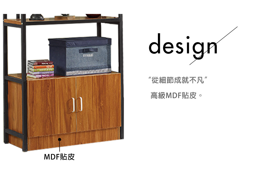 高級MDF貼皮+防鏽烤漆黑鐵框架打造+門片採油壓後鈕緩衝設計